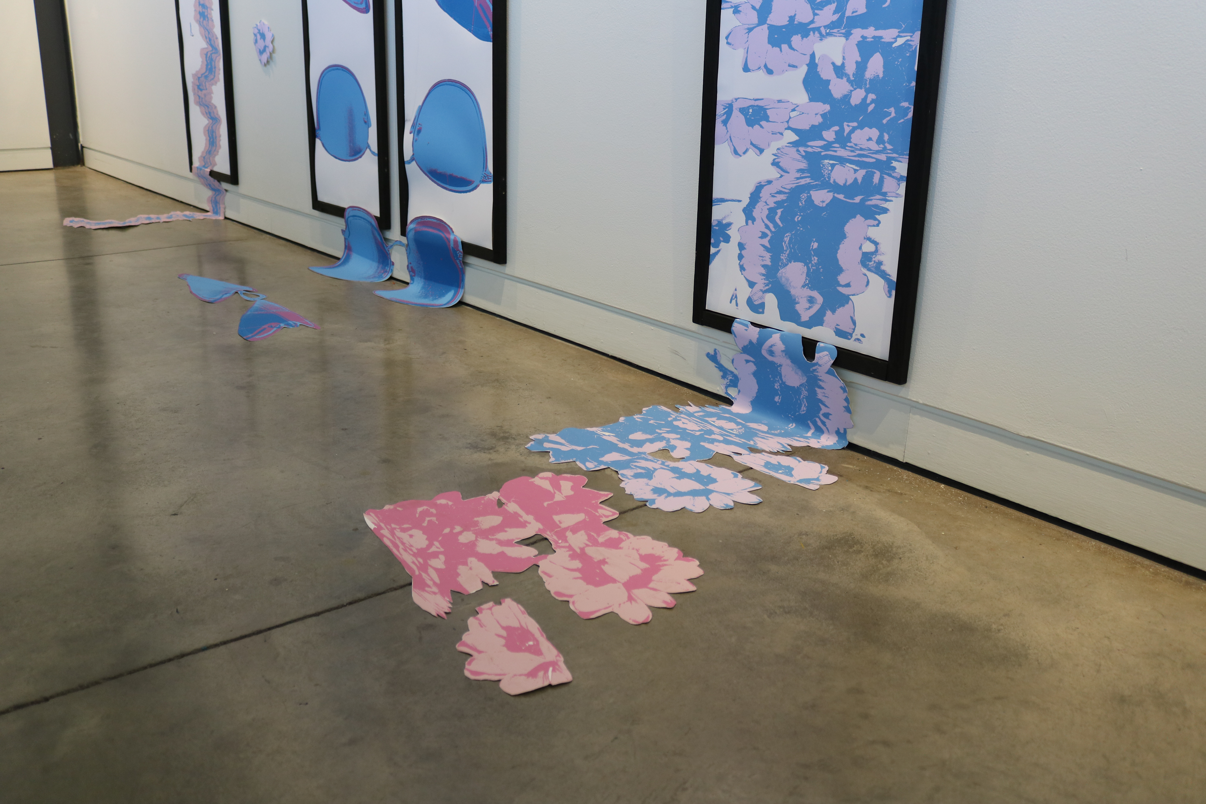 Natalie R. Chiovitti, Detail of Emerging Questions (Lenses 2), 2023, digital mixed media and drawing printed on paper installation, 4 panels of 72 x 20 in.